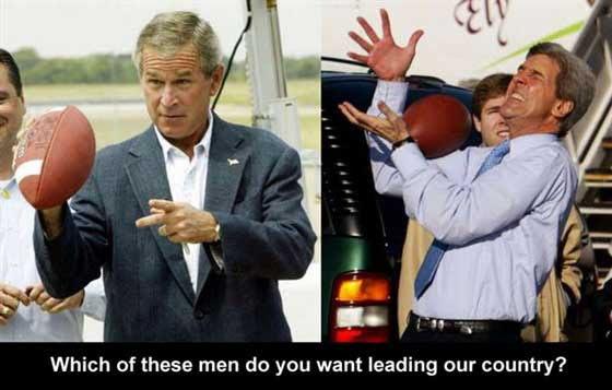 A comparison of the 2 canidates' methods of catching a football = funny. Obviously I didn't make my decision of who to vote for over his athletic prowess (or lack thereof).